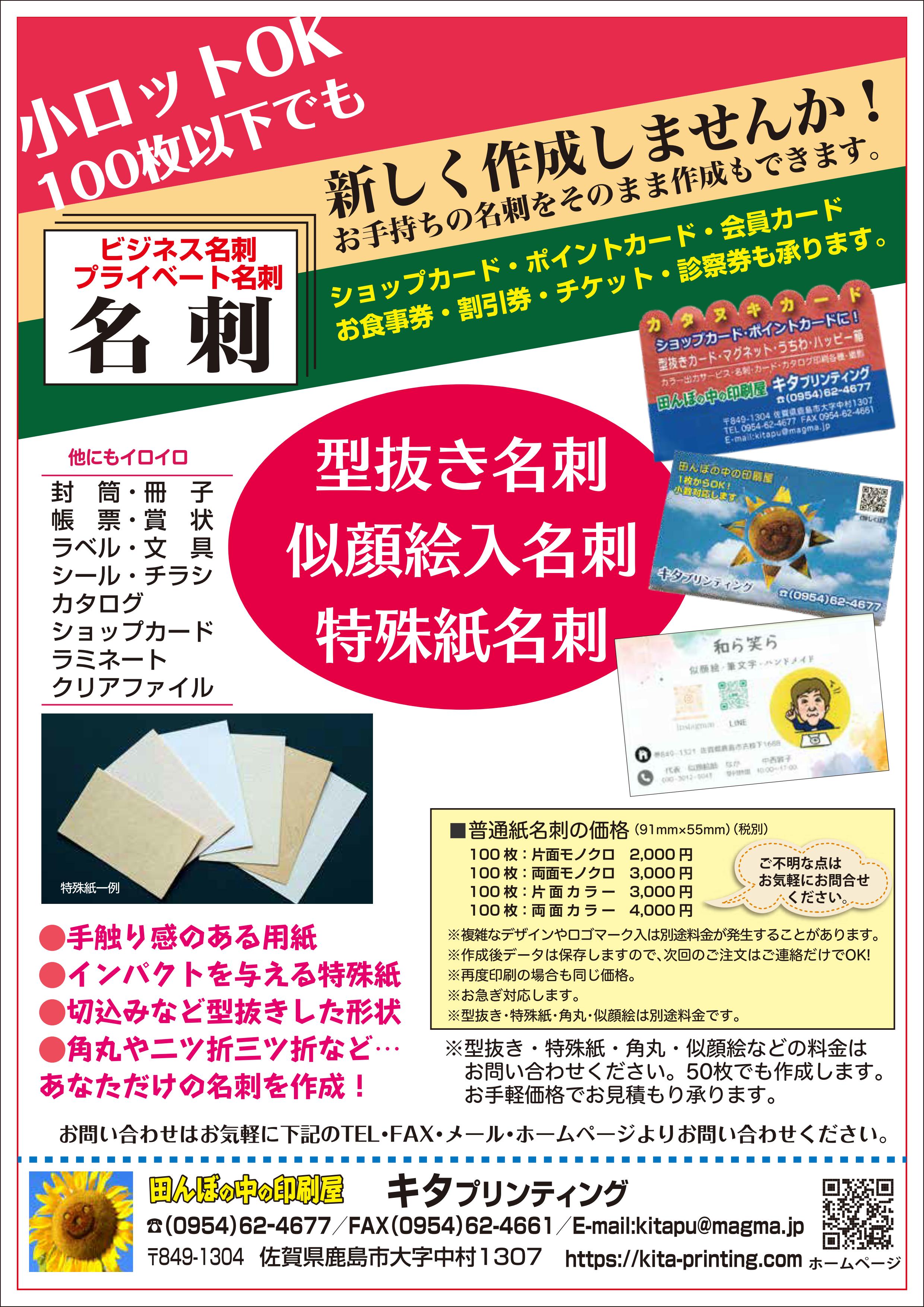 キタプリンティングでは、用途や目的に応じたオリジナル名刺を、1枚1枚丁寧に作成いたします。